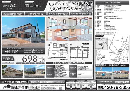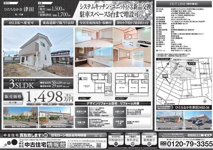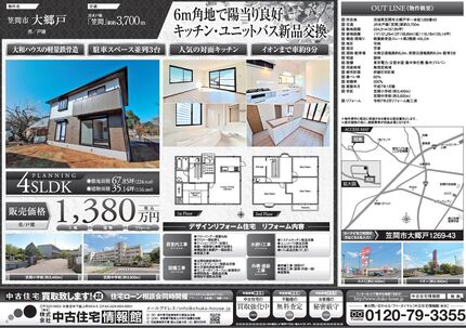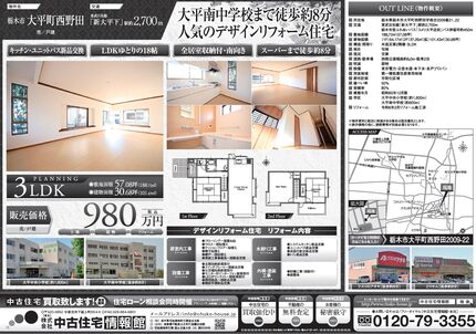 【那須塩原市東赤田】 キッチン・ユニットバス新品交換 南東6m角地 駐車3台可 全居室収納付 スーパーあさのまで徒歩約6分 那須ガーデンアウトレットまで車約14分