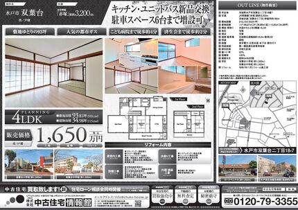 【水戸市双葉台】 駐車6台まで増設可 都市ガス キッチン・ユニットバス新品交換 県立こども病院まで徒歩約4分 水戸済生会総合病院まで徒歩約2分