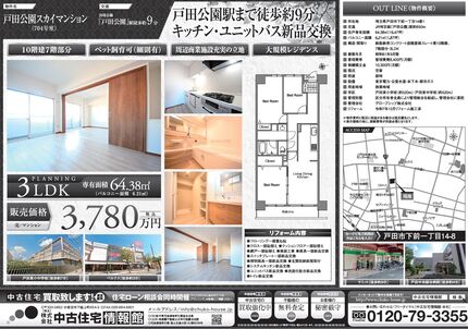 【戸田市下前】 戸田公園駅9分 10階建7階部分 キッチン・ユニットバス新品交換 周辺商業施設充実の立地 ペット飼育可(細則有) 戸田東小中学校7分