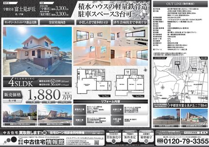 【宇都宮市富士見が丘】 積水ハウスの軽量鉄骨造 駐車3台可 キッチン新品交換 かましんまで車約6分 済生会宇都宮病院まで車約7分 セブンイレブンまで徒歩約10分