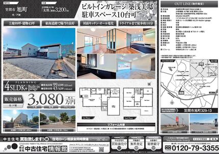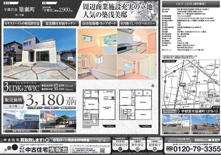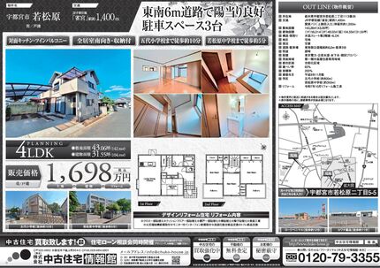 【大田原市浅香】 東南6m道路 駐車3台 ユニットバス新品交換 吹抜けリビング・全居室南向き 西原小学校まで徒歩約9分 大田原中学校まで徒歩約7分