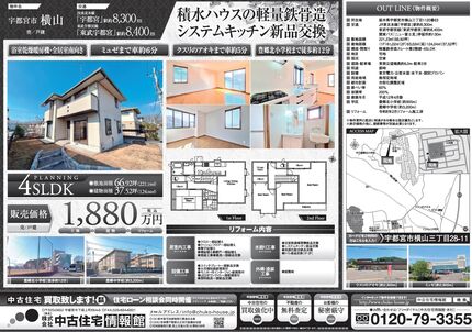 【宇都宮市横山】 積水ハウスの軽量鉄骨造 システムキッチン新品交換 全居室南向き ミュゼまで車約6分 クスリのアオキまで車約5分 豊郷北小学校まで徒歩約12分