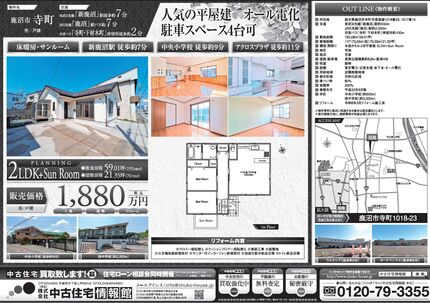 【鹿沼市寺町】 人気の平屋建 駐車4台可 オール電化住宅 リビング床暖・サンルーム 新鹿沼駅7分 ウエルシア3分 中央小学校9分 アクロスプラザ鹿沼11分